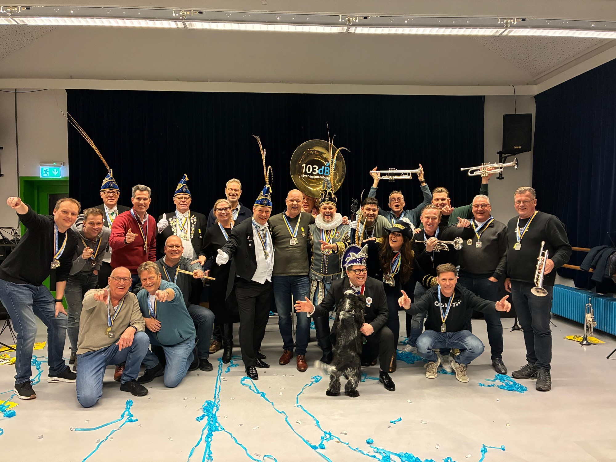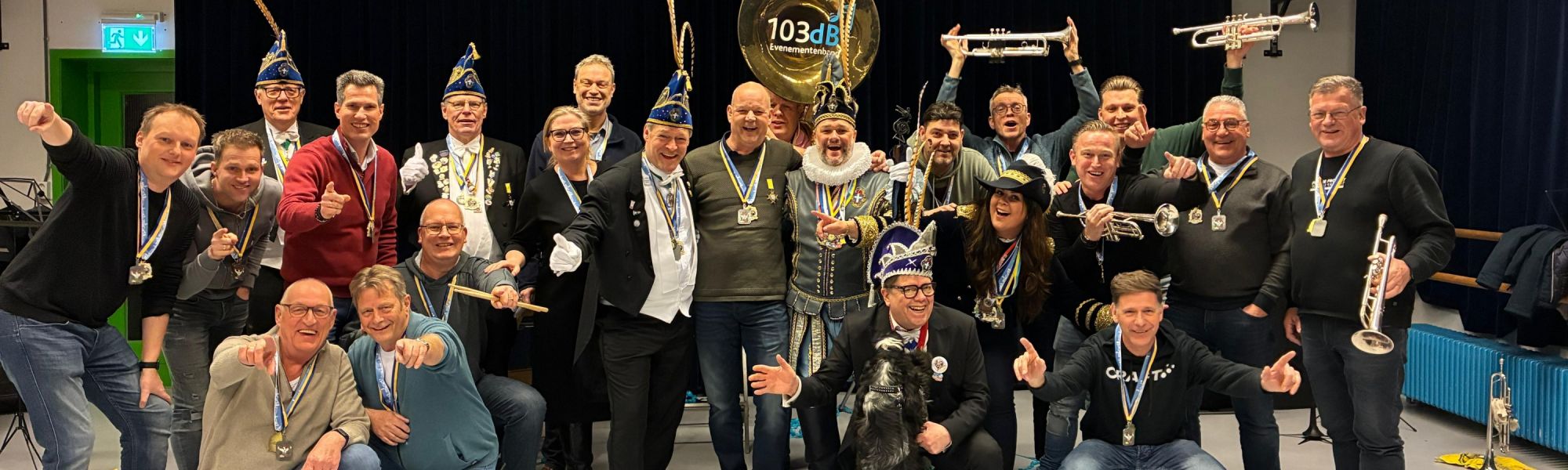 Sinds 2011 weet 103dB iedereen te betoveren met hun aanstekelijke enthousiasme en pure passie voor muziek. Deze groep muzikanten, stuk voor stuk met jarenlange ervaring en een rijke achtergrond bij onder andere Jubal, ‘Thomas á Kempis-orkest’ en de legendarische ‘Als Je Maar Bekend Band’, brengt een unieke energie op het podium die je nergens anders vindt. Wat bij 103dB altijd voorop staat, is plezier – en dat spat er vanaf! Van tijdloze gouwe ouwe tot de nieuwste popmuziek en heerlijke Nederlandse meezingers: ze spelen het allemaal met flair en overtuiging. Van elk nummer maken zij een ware performance, met soms gekke dansjes, of beter ‘danspasjes’, maar ook het betrekken van het publiek door wilde interactie.